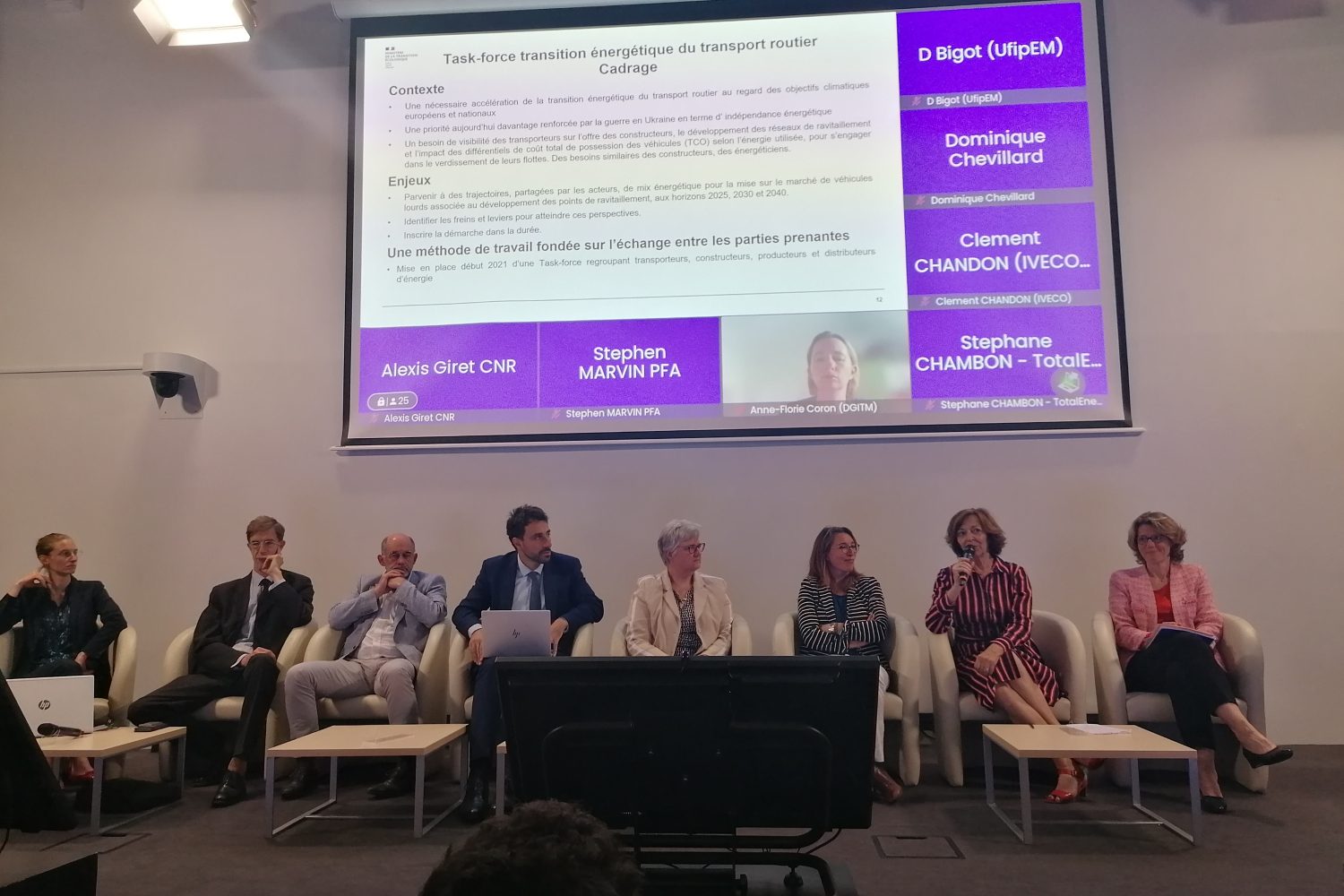 La taskforce a réuni, depuis 2021, l’ensemble des acteurs concernés par la transition énergétique du transport routier de marchandises et de voyageurs : les constructeurs, énergéticiens, transporteurs avec les ministères.